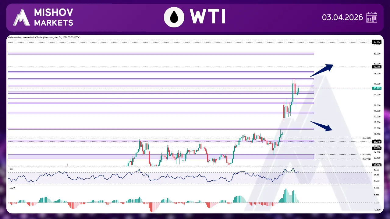 In WTI, as accurately highlighted in Monday’s analysis, the price managed to close above 72.800, extending its rally toward our targets at 73.180–73.300, 74.190–74.510, 75.540–75.780, and 76.770–77.010. After encountering resistance in this area, the price began to retrace part of its bullish momentum. At this stage, if bullish momentum remains strong and the price provides a confirmed close above 77.200, further upside may follow toward 78.130–78.390, 79.350, 81.970–82.200, and 84.370–84.650. On the downside, if the price faces resistance and closes below 71.200, it may decline toward the 70.780–70.500 and 68.100–67.800 zones to look for support. Moreover, if these areas fail to hold, a deeper breakdown could push prices toward 66.300, 65.700, 64.695, and 63.650–62.930.