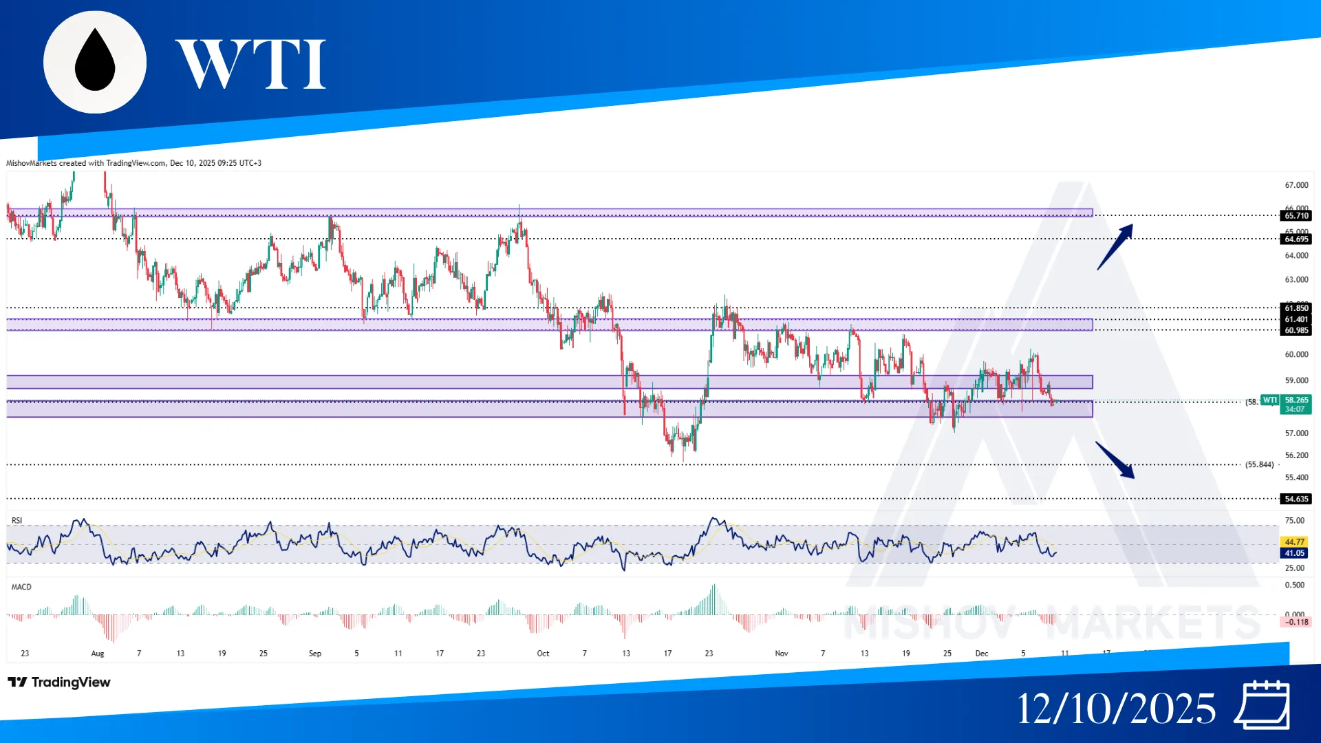 In WTI, as mentioned in Monday's analysis, the 59.240 zone couldn't support the price and it has returned to the 58.150-57.600 zone once more. Now if the price receives support from this zone and continues to increase, it could reach our targets at 60.980 and 61.850, and if it provides a close above 62.500, then it might continue to move toward the ranges of 64.690, 65.710, 67.790-67.980, and even 69.100. But if the 58.150–57.600 zones fail to act as support, and prices provide a close below the 57.000 level, then it could decrease further toward the ranges of 55.840, 54.630, and 52.020.