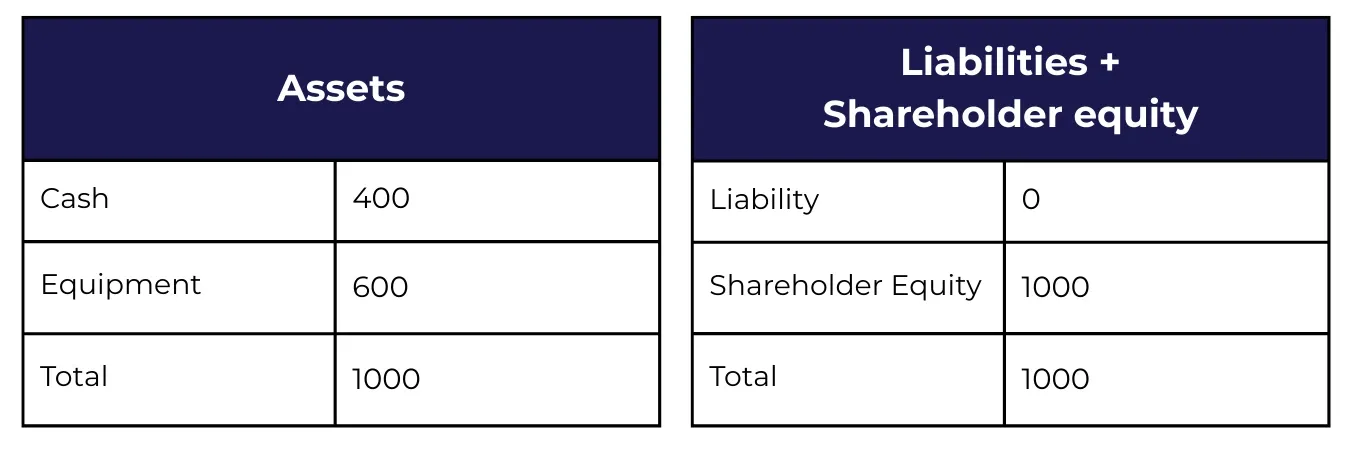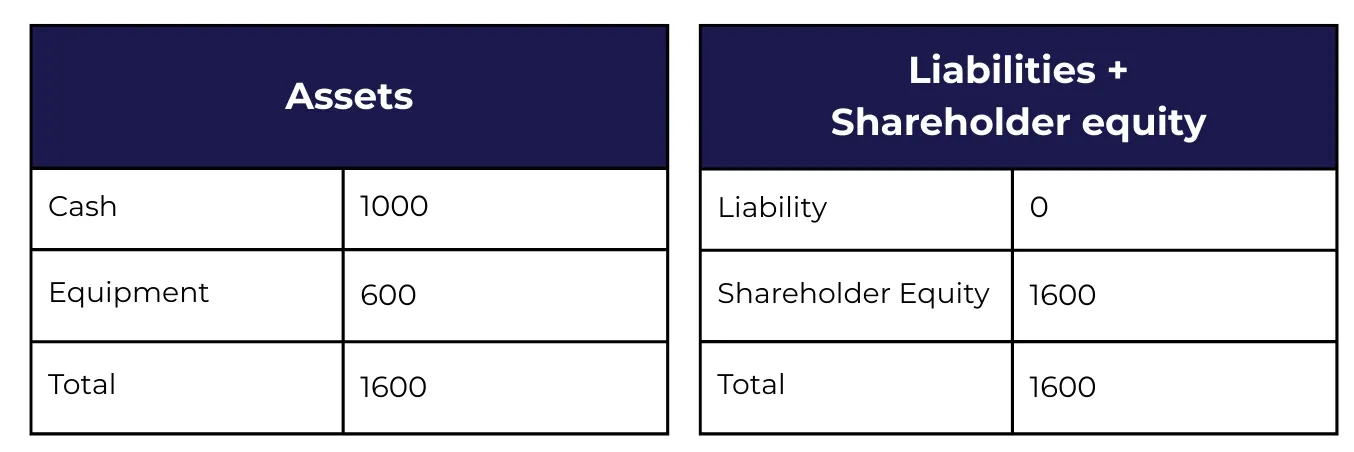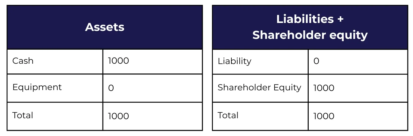 Providing an example is the best way to illustrate this concept. Think about a new business that hasn't opened yet and only has $1,000 in cash from its founders as an asset.