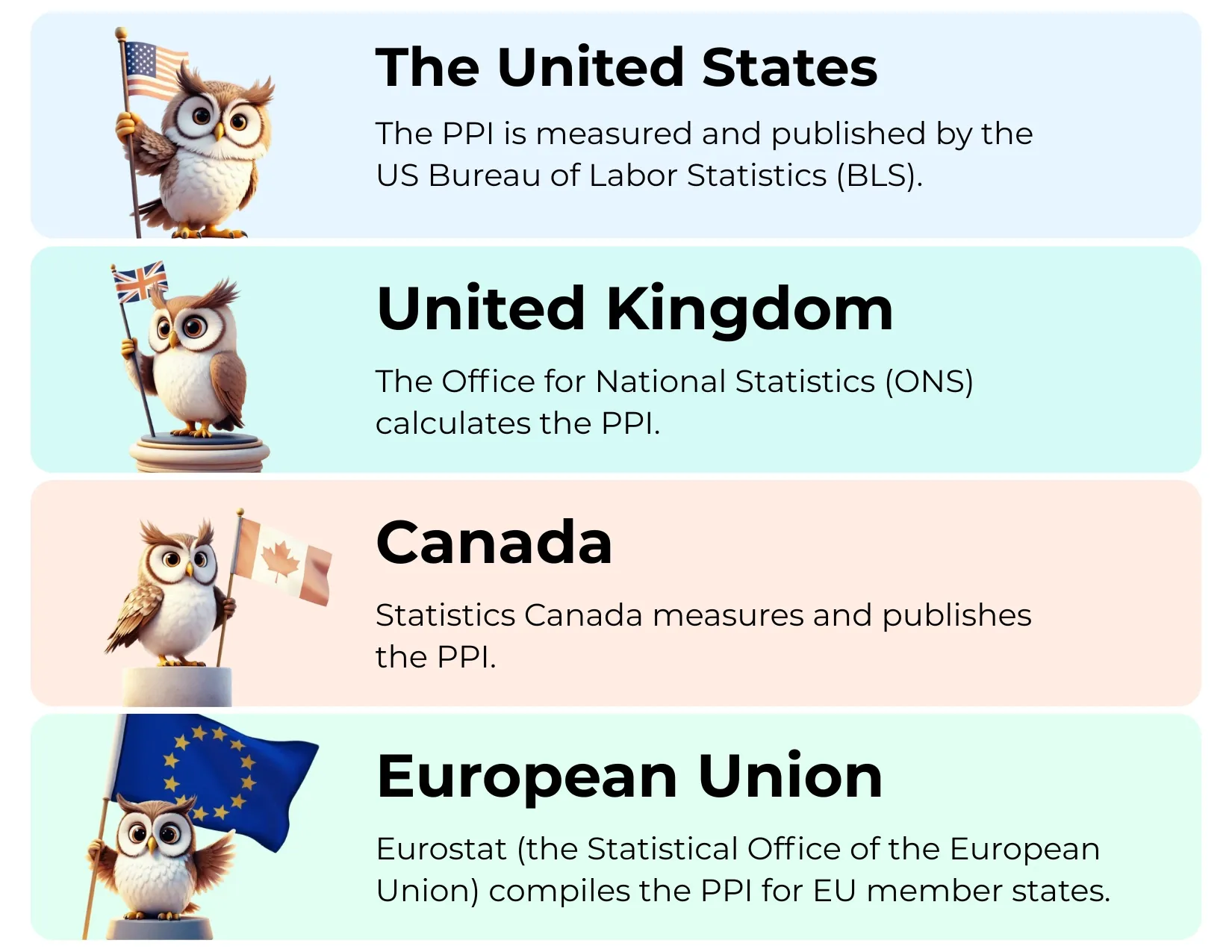 Usually, national statistics agencies or governmental entities are in charge of economic data measuring the Producer Price Index (PPI) and releasing PPI news. Examples for a few major countries are as follows: